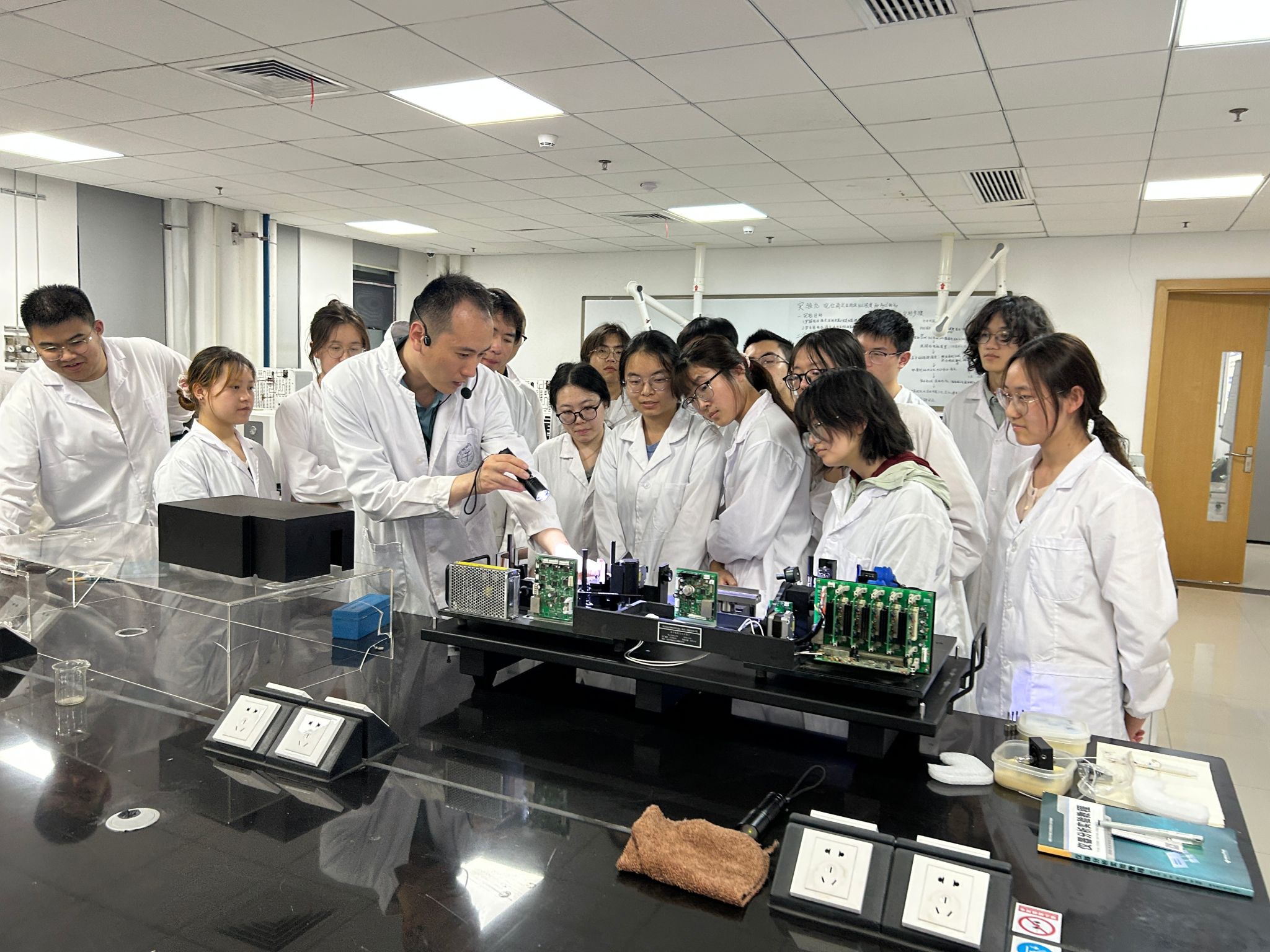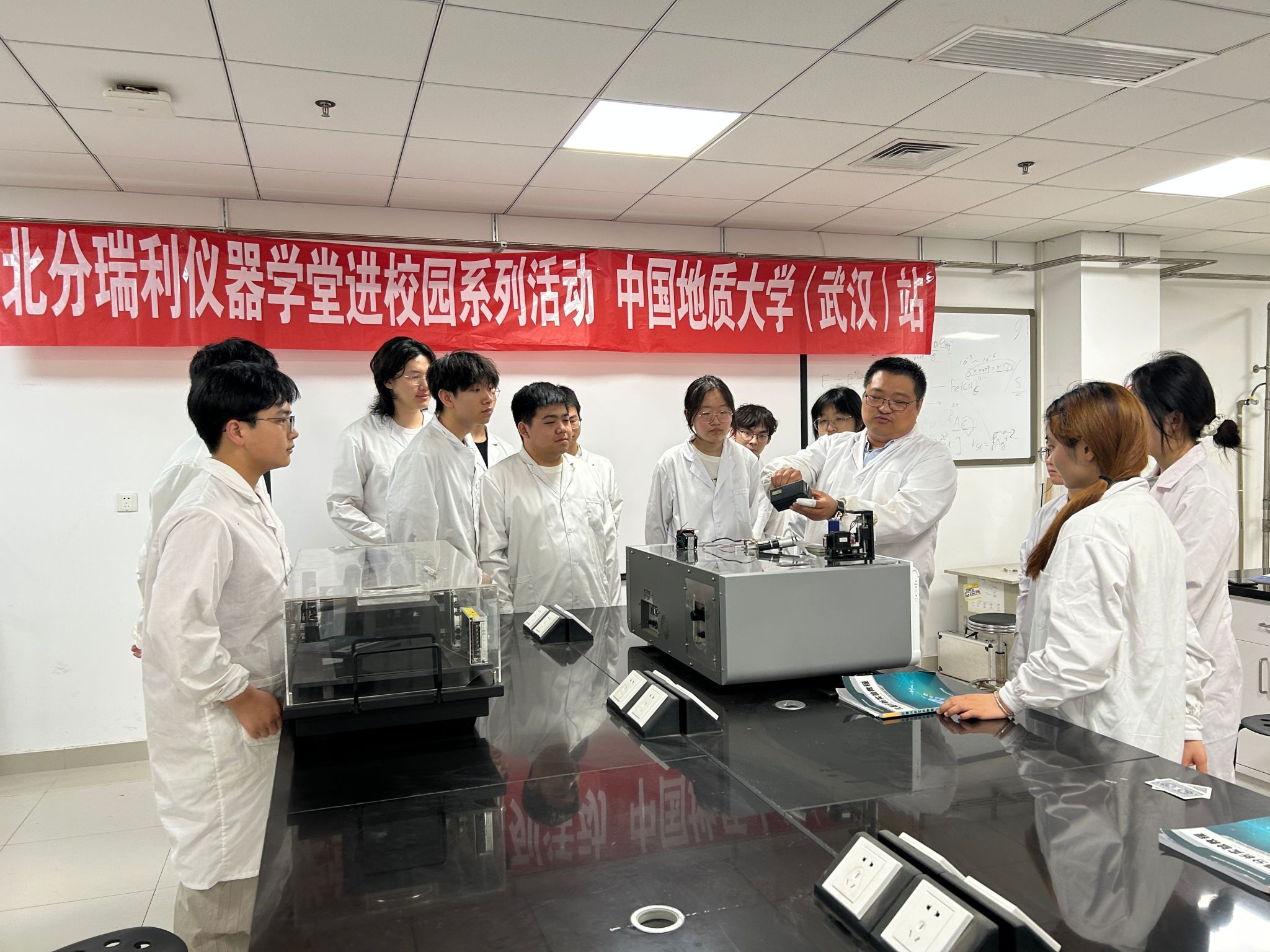 为切实提升仪器分析相关课程教学质量,分析化学教学团队与北分瑞利公司经过近一年的精心研讨与筹备,创新性地推出基于透视化仪器的教学模式。北分瑞利充分发挥技术优势,专门组装了透视化原子荧光光谱仪和原子吸收光谱仪用于教学,并选派资深工程师走进校园,与学院教师共同开展实践教学。活动为期两周,应用化学专业 23 级 5 个班级 130 余名学生参与其中。新颖的教学方式让学生们耳目一新,大家纷纷表示:“透视化仪器直观展示了仪器内部构造,帮助我们更透彻地理解实验原理和操作方法。” 还有同学满怀期待地说:“希望这个活动能一直办下去,让更多学弟学妹也能获得这样难得的学习机会。”