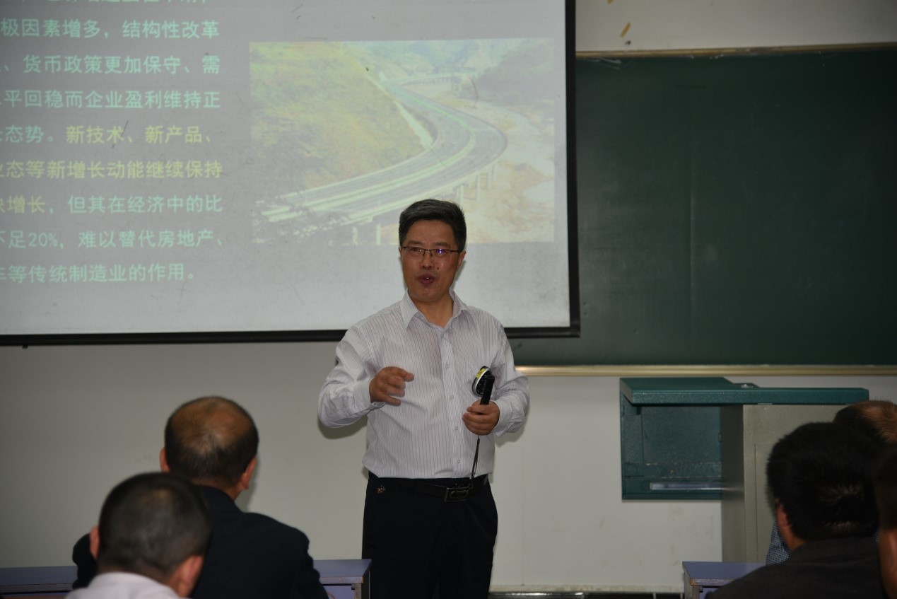 王华副校长从国内外政治形势、经济形势和军事形势等方面解读了中国在欧美各国缓慢增长甚至负增长的形势下仍能保持高速增长的经济奇迹,展现了我党在国内外共同关注之下如何应对执政党考验、如何更好地服务人民、夺取中国梦和“两个一百年”伟大胜利的决心。