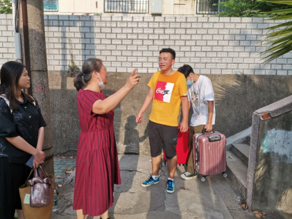 031193班学务指导蔡卫卫老师在新校区迎接同学们