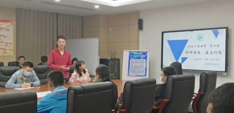 2020年10月23日晚7点,“材化人看世界”活动在材化楼317顺利举行。本期主题是“科研指路,海上灯塔”,033172班马骏、孙鹏,031174班邹娟作为主讲嘉宾结合自身本科阶段学习与科研的经历,与同学们分享学习与科研方法。