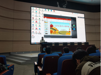 黄海老师作心理健康培训,他从压力的定义、阶段以及应对方式切入,鼓励同学们做好自我心理调节,同时建议有需要的同学到心理中心进行咨询。