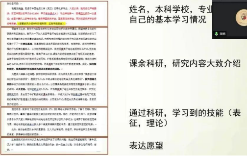 (武汉),他们向同学们进行了考试复试实战经验分享。其中,冯颖针对英语口语问答分享了她的小技巧——背诵万能模板,她还告诉同学们要密切关注校方官网的消息通告,积极把握机会。周扬通过罗列复试自我介绍的要点,鼓励同学们抓住复试机会,并充分了解导师的研究方向。