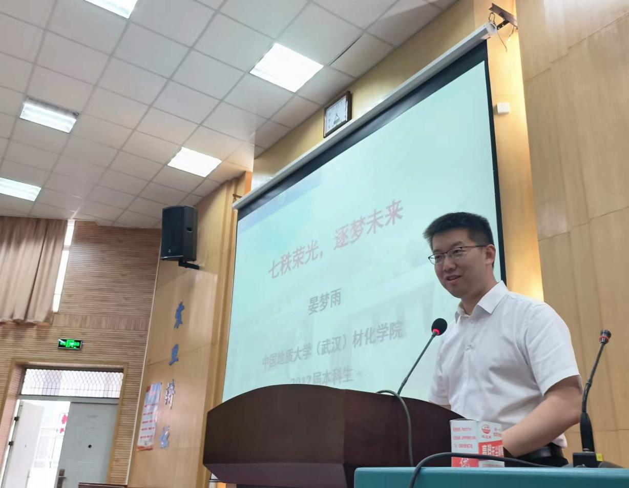 2012届优秀校友,武汉理工大学研究员、博士生导师、华盛顿创新学者、国家高层次青年人才晏梦雨研究员为同学们做分享,材料系主任梁玉军老师主持。