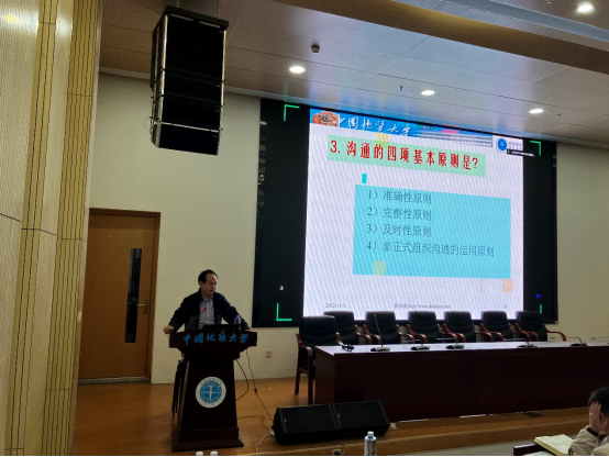 材料与化学学院党委副书记余江涛为学生骨干做《造就真本领 提升成就感》的专题讲座。他介绍了领导力的内涵,表示领导力就是影响力,体现在作决策、带队伍、树影响,需要品性、风格、声望、心理品质、礼仪修养、人格魅力等个人素质的综合作用。他结合总书记对领导干部素质能力的要求,结合中外领导人在大学期间的工作成长经历,珍惜大学期间的历练与锻炼,做讲正气、顾大局 、敢担当、德才兼备的优秀学生干部,引领广大同学共同进步。他还播放了10年前园区学生工作ppt,一幅幅照片、一个个场景让参加培训学习的同学感慨良多,表示时光虽然远去,但是一代代学生工作骨干的智慧与青春热情一样,是激励奋进的生动样例。