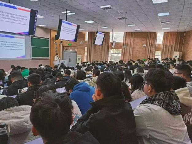 迎接新学期第一节课,同学们早已做好准备,以饱满的精神全身心投入课堂。同时,同学们惊喜的发现,阶梯教室里新设了四个多媒体屏幕,让后排的同学听课更加方便、观看课件更加清晰。