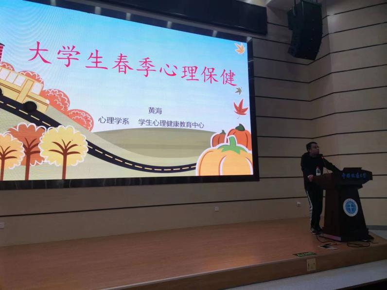 为进一步加强大学生心理健康教育,促进同学们人格的健全发展,午夜AV 邀请心理咨询中心黄海老师开展了《大学生春季心理保健》的主题讲座。帮助同学们完善心理建设,从而更好的调整学习状态,适应新学期,新生活。除了普适性的讲座,午夜AV 还建立了心理问题重点关注台账,对重点关注学生,各年级辅导员与学生骨干及时跟进,谈心谈话,提供帮助。