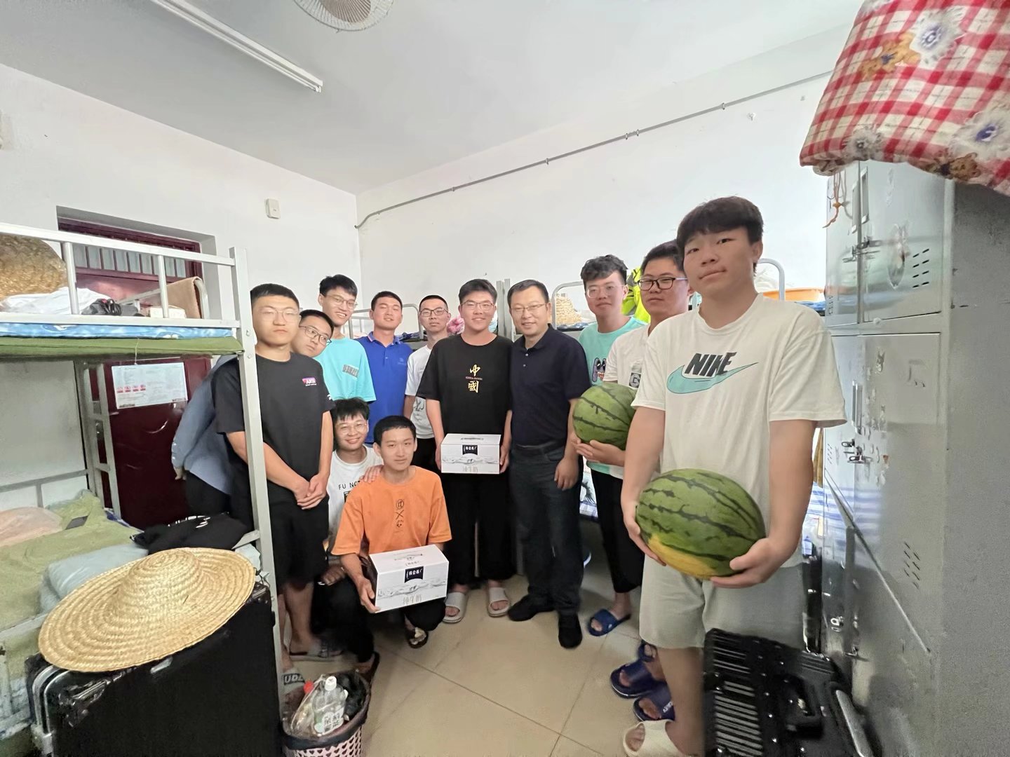 野外实习结束后,梁本哲书记来到实习基地学生宿舍与学生座谈并向同学们发放慰问物资。梁本哲坐在同学们的床铺上与同学们促膝长谈,向同学们亲切问候,并详细询问了在站学习、生活情况。