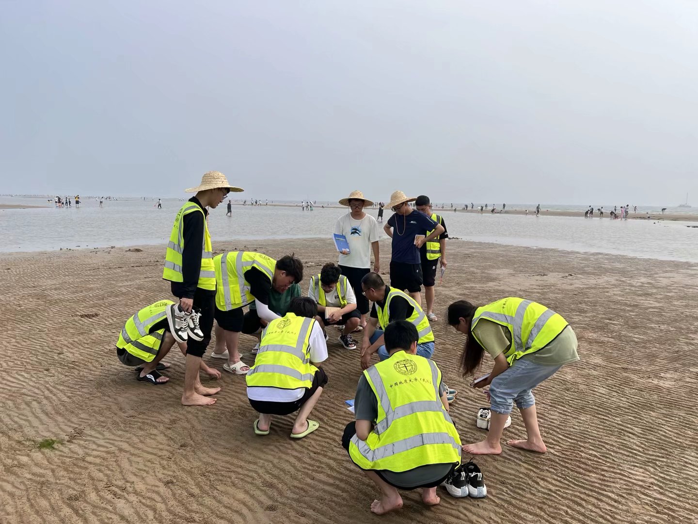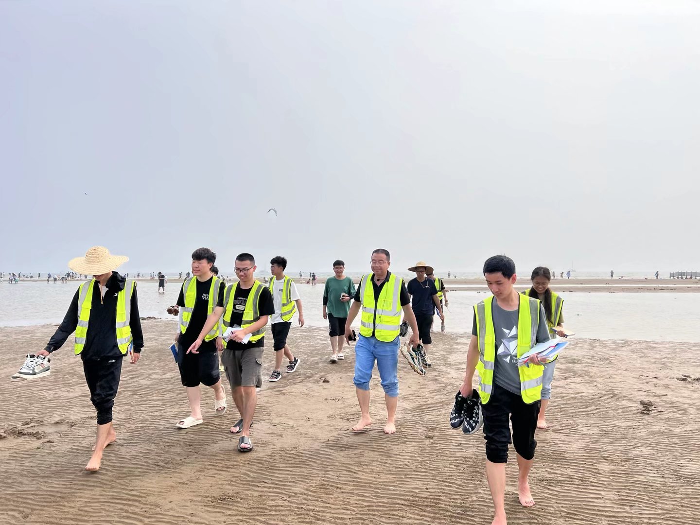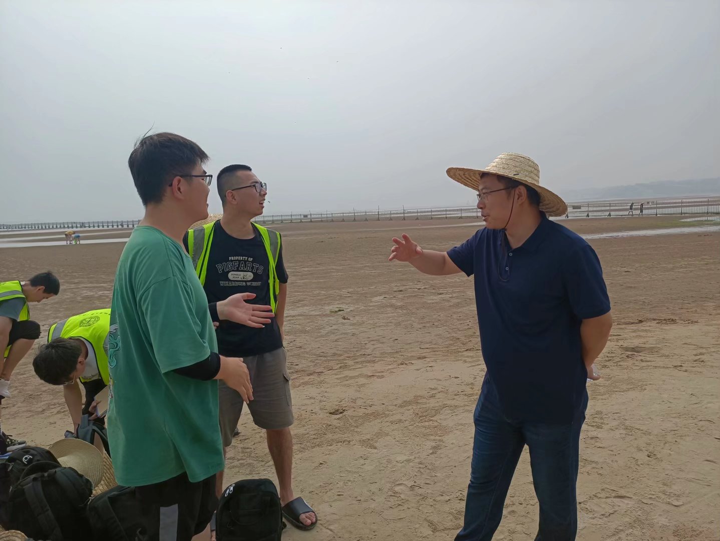 820日,梁本哲书记和实习师生一起同走新河口野外实习路线。带队专业教师葛文教授介绍本次实习安排以及整体进展,现场讲解新河口地质路线知识点。随后,梁本哲书记与实习师生共同观察泥沙质海岸沉积物特征、波浪运动特征与形态以及生物分布特征,并与实习师生交流相关实习问题,翻阅同学们的野外记录簿。