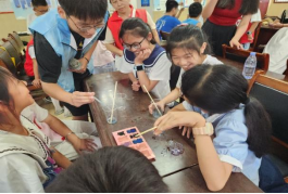 “我以后也要向哥哥姐姐们一样做化学实验,成为一个科学家。”这是材料化学实验展演科普实践活动现场一位小朋友对“绿芽公益”团队成员说的话。