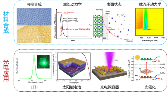 3. 低维光功能材料的设计、合成与光学特性研究,在显示、光电探测器、太阳能电池、手性发光、全光开关等领域具有潜在应用。