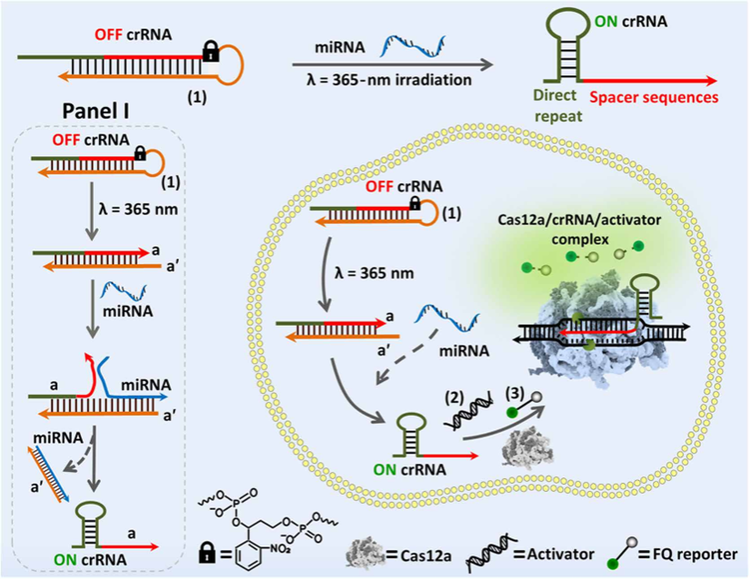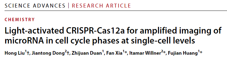 近日,午夜AV 夏帆教授/黄福建教授课题组在光激活CRISPR系统高效单细胞miRNA成像研究方面取得进展,相关研究成果以“Light-activated CRISPR-Cas12a for amplified imaging of microRNA in cell cycle phases at single-cell levels”发表于Science Advances (Sci. Adv. 2024,10, eadp616。 微小RNA(miRNA)是一类小的非编码RNA,它的异常表达与各种疾病的发生和发展密切相关,可作为癌症诊断、预后、进展和复发的生物标志物。然而,细胞内的miRNA含量很低,因此需要开发信号放大的miRNA检测方法。传统的miRNA检测方法,如实时荧光定量PCR(RT-qPCR)和滚环扩增(RCA),虽有较高的灵敏度,但在单细胞水平上的检测和成像仍存在挑战。 夏帆教授/黄福建教授课题组在前期光响应功能核酸生物传感研究基础上,发展了一种新的光激活CRISPR系统用于活细胞中miRNA-21的信号放大检测及其成像。该系统在单细胞水平上实现时空选择性激活,以评估miRNA-21在不同细胞周期阶段的相对表达水平,从而绘制单细胞阵列中不同细胞周期阶段的miRNA-21含量分布图。该方法为深入研究不同细胞周期中miRNA的功能,从miRNA水平上分析细胞周期调控的新机制提供了一种有力的分析手段。 该研究工作午夜AV (武汉)博士生刘红为论文的第一作者。希伯来大学Itamar Willner 教授、午夜AV (武汉)夏帆教授和黄福建教授为本文的共同通讯作者。该工作得到了国家自然科学基金重大项目,国家重点研发计划以及中-以国际合作等项目资助。(编辑:黄福建 审稿:梁本哲) 论文链接://www.science.org/doi/full/10.1126/sciadv.adp6166