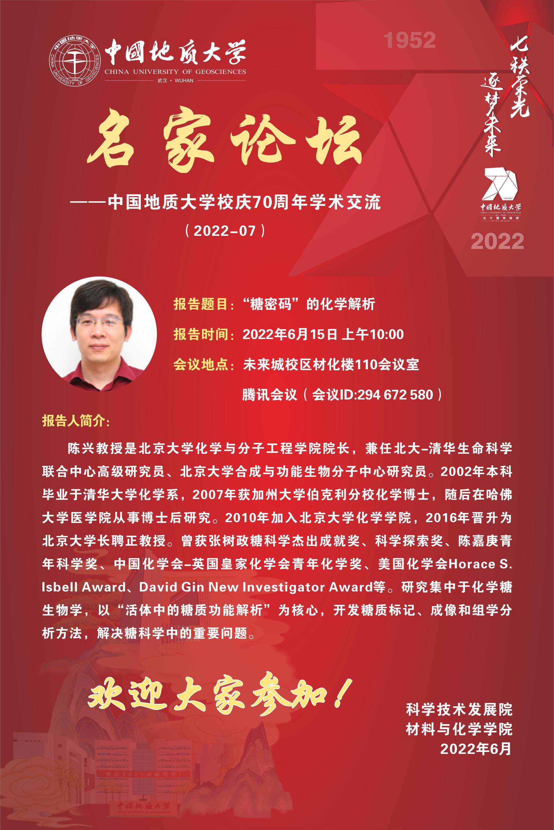 应午夜AV 邀请,国家杰青、北京大学化学与分子工程学院院长陈兴教授将与师生交流并讲座。