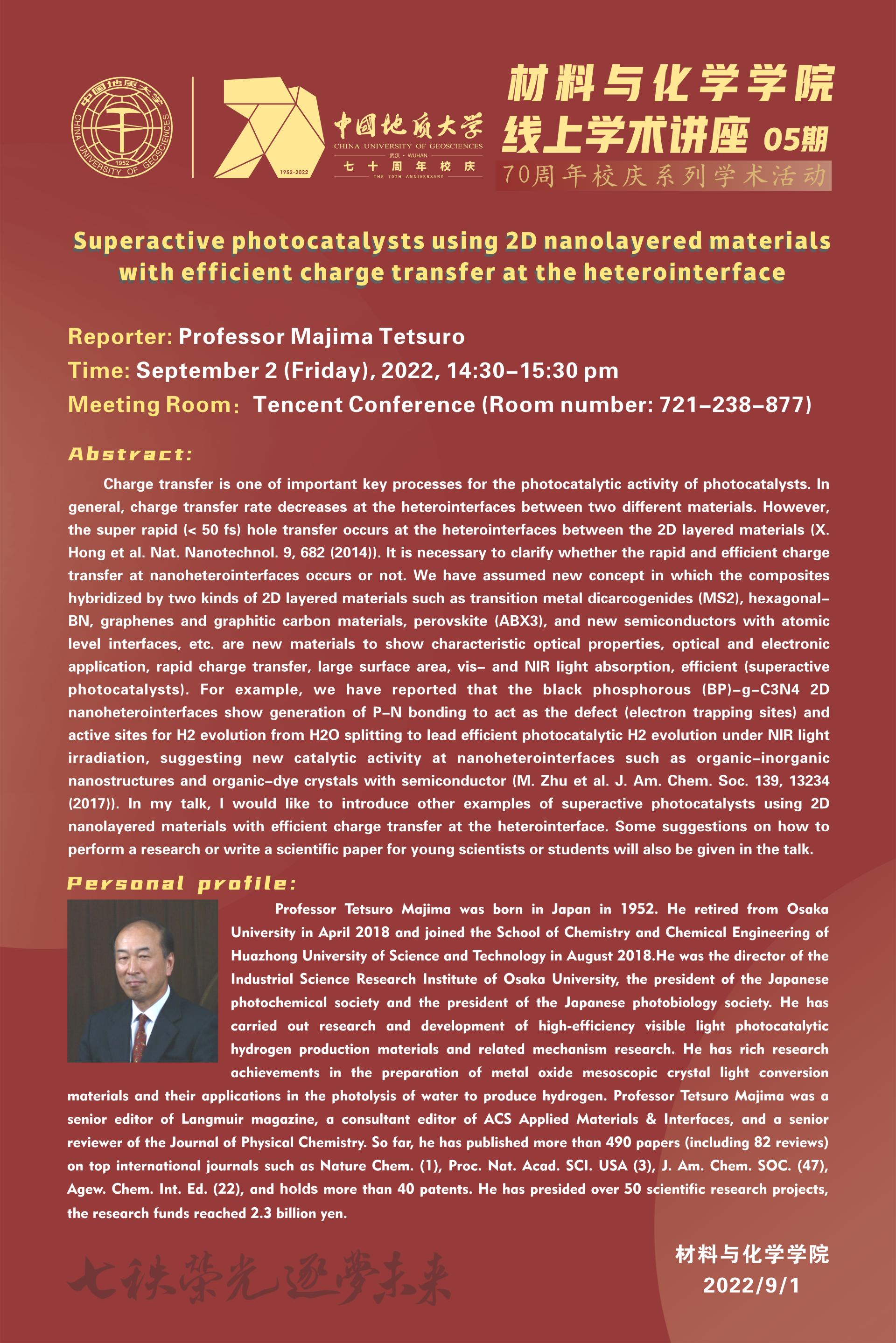 应午夜AV 邀请,华中科技大学化学与化工学院Tetsuro Majima教授将与师生交流并讲座。