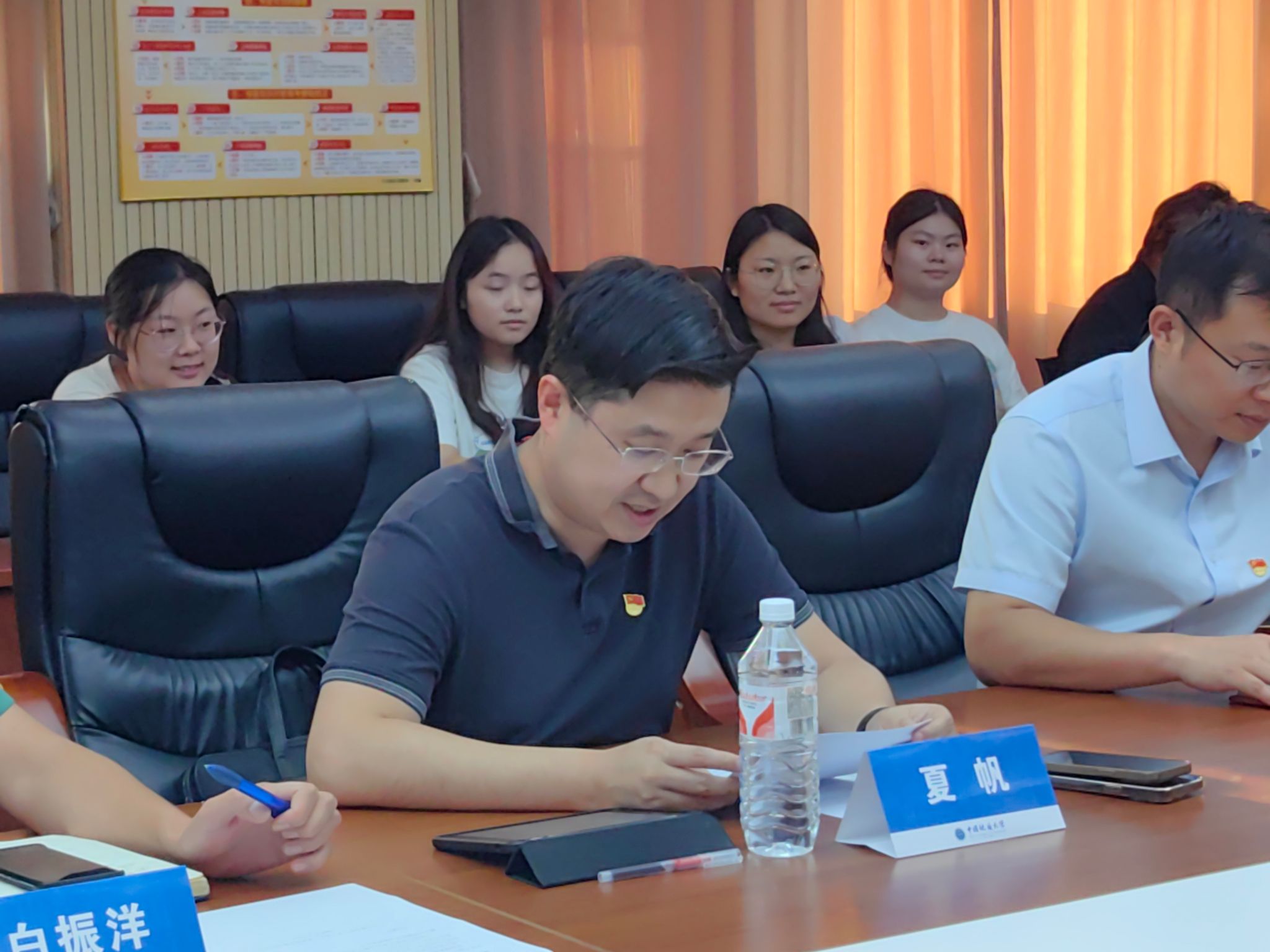 生命分析化学团队负责人夏帆教授讲话。他对学院党委长期以来对团队发展的支持表示衷心感谢。他表示,党支部建设中要以落实党的二十届三中全会精神及全国教育大会精神为指导,扎实推动党建与业务工作深度融合发展,以钉钉子精神抓好落实,协力推动党支部高质量建设发展,挺膺担当争做全国样板,团队师生要齐心协力,竭力为党支部建设保驾护航。