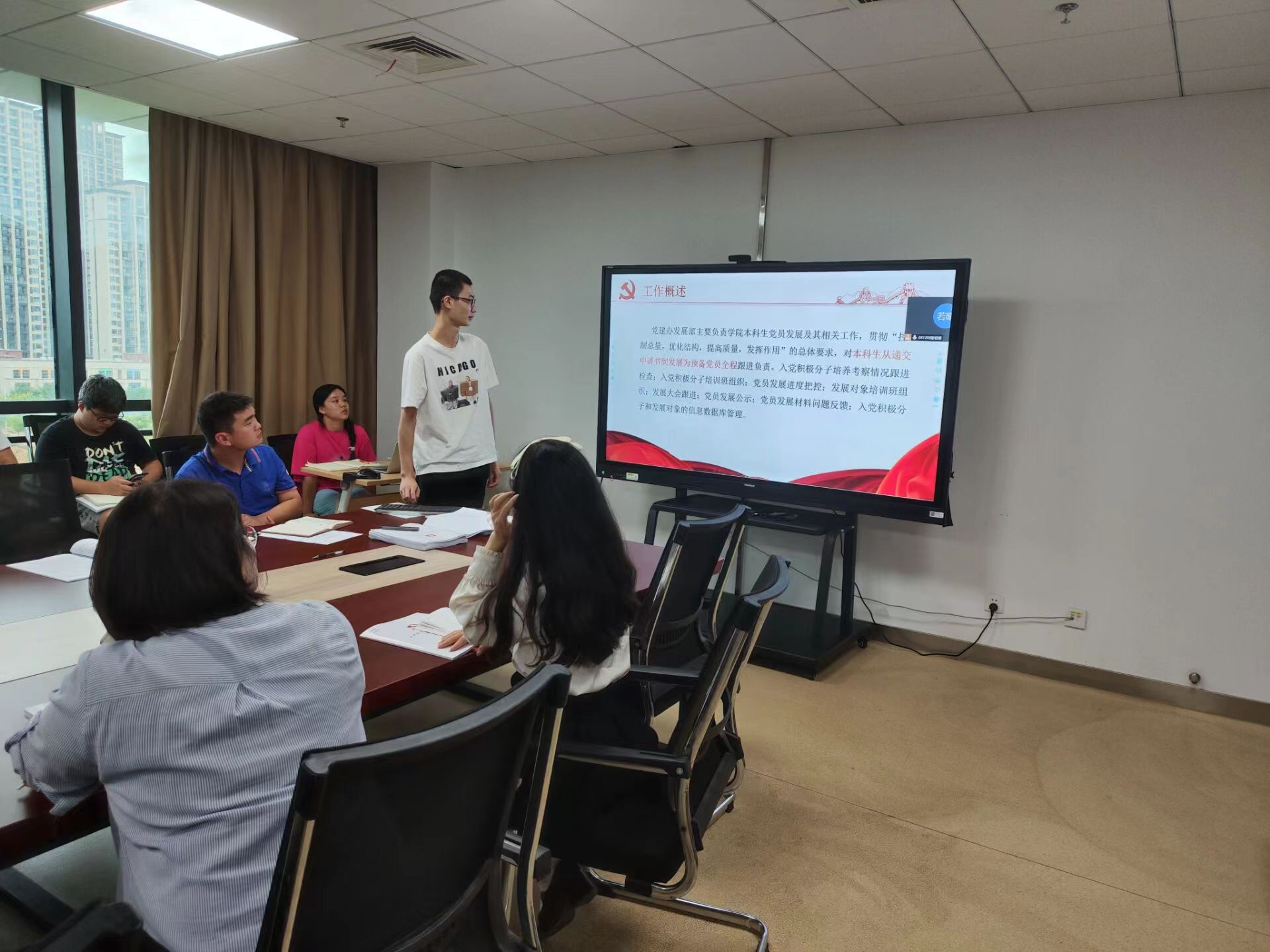 在教服611会议室举办第四期党支部书记论坛,围绕学生党建工作办公室工作任务、秋季学期学生党建工作重点、学生党支部建设经验等开展学习交流,学院党委书记梁本哲出席会议并讲授专题党课,党建辅导员侯亚飞、全体学生党支部书记、党建工作办公室成员参加会议。会议由侯亚飞主持。