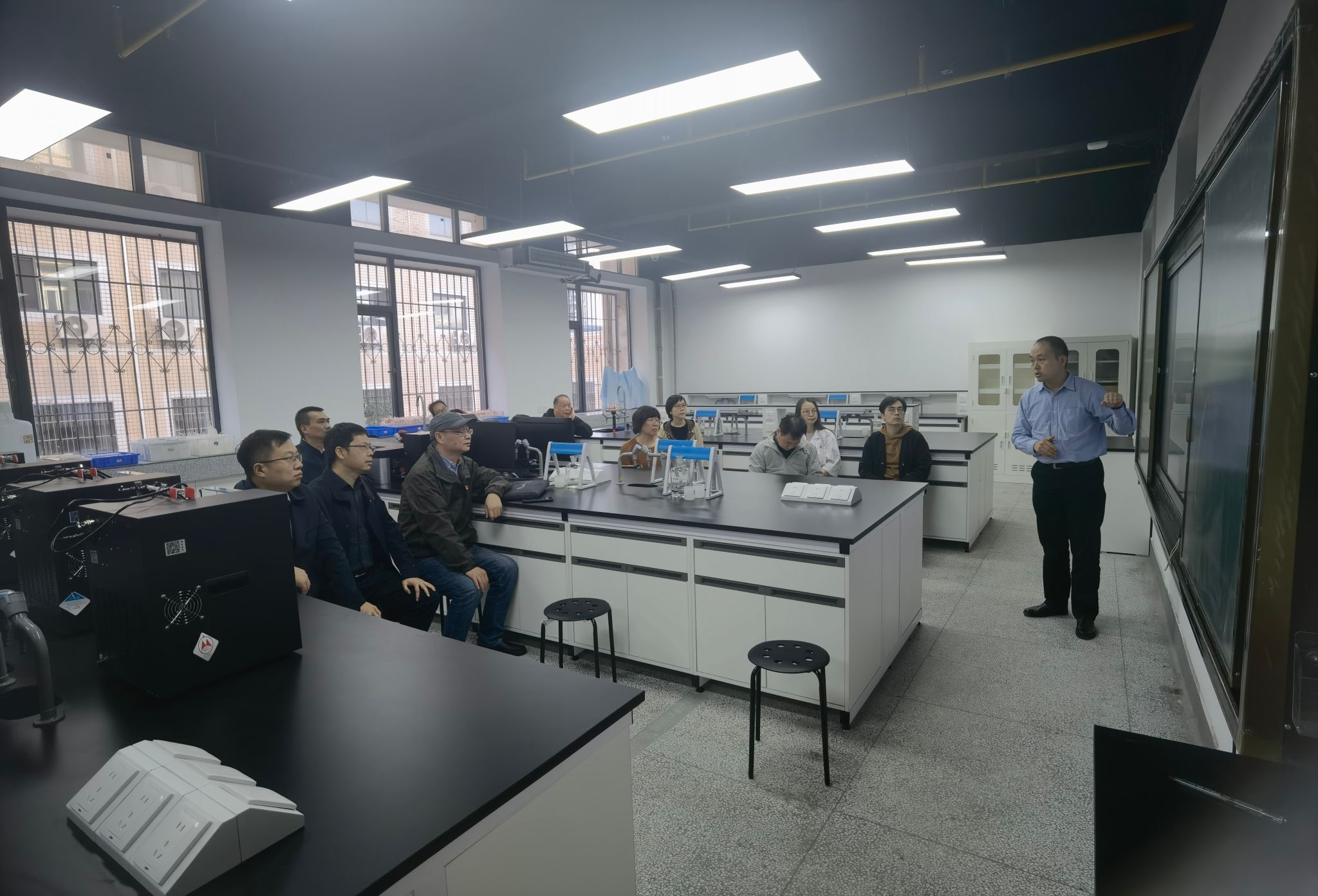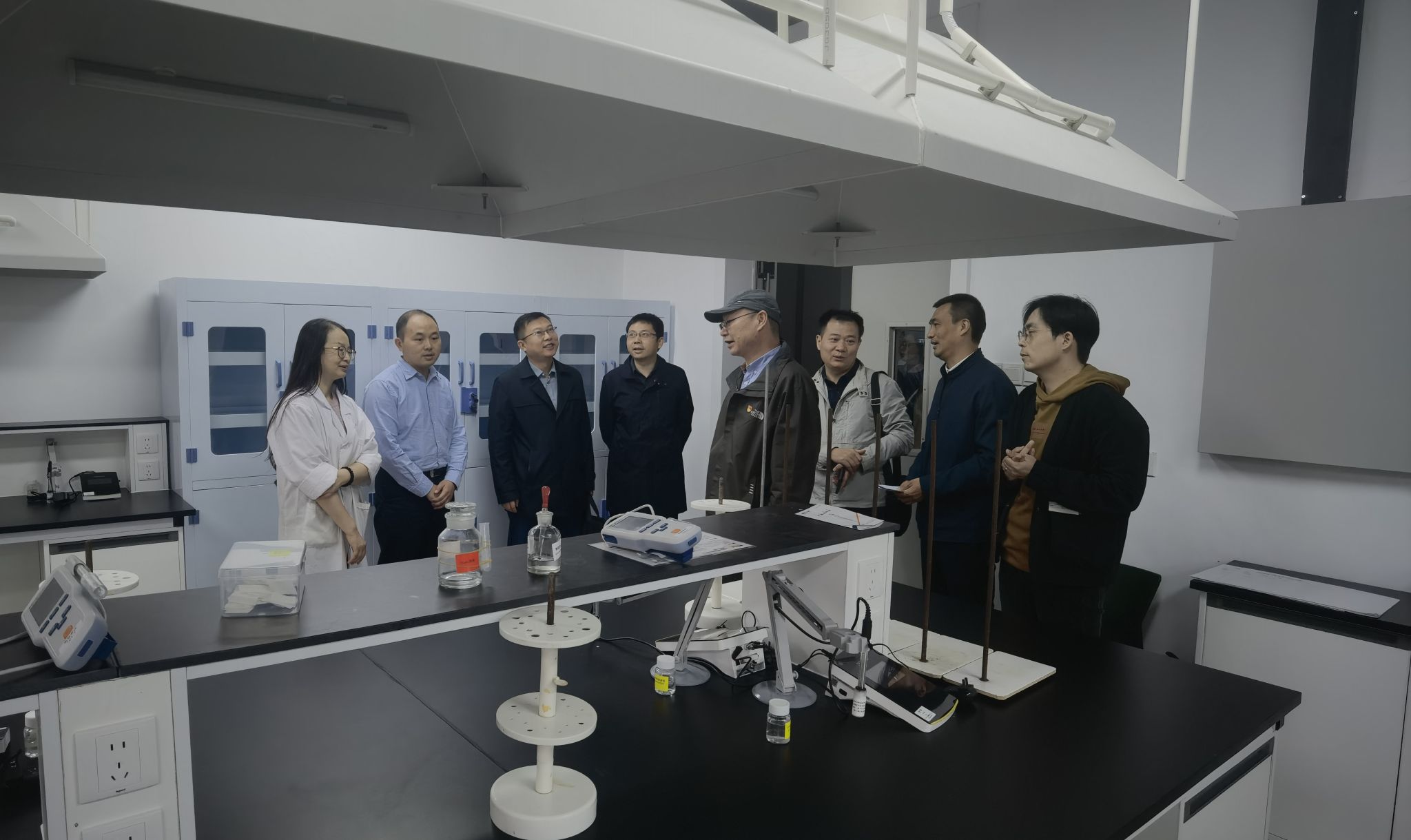 为提升基础化学实验室教学硬件保障,在学校相关部门的大力支持下,学院于今年暑期对南望山校区基础化学实验室进行了水电与实验设施改造。11月7日上午,实验室与设备管理处处长王耀峰带队来院调研实验室标准化改造与高标准实验室建设工作,学院党委书记梁本哲、院长胡兆初、副院长公衍生、教学实验中心主任夏开胜、化学系主任程国娥、《大学化学》课程有关负责人以及教学实验中心有关老师参加调研。