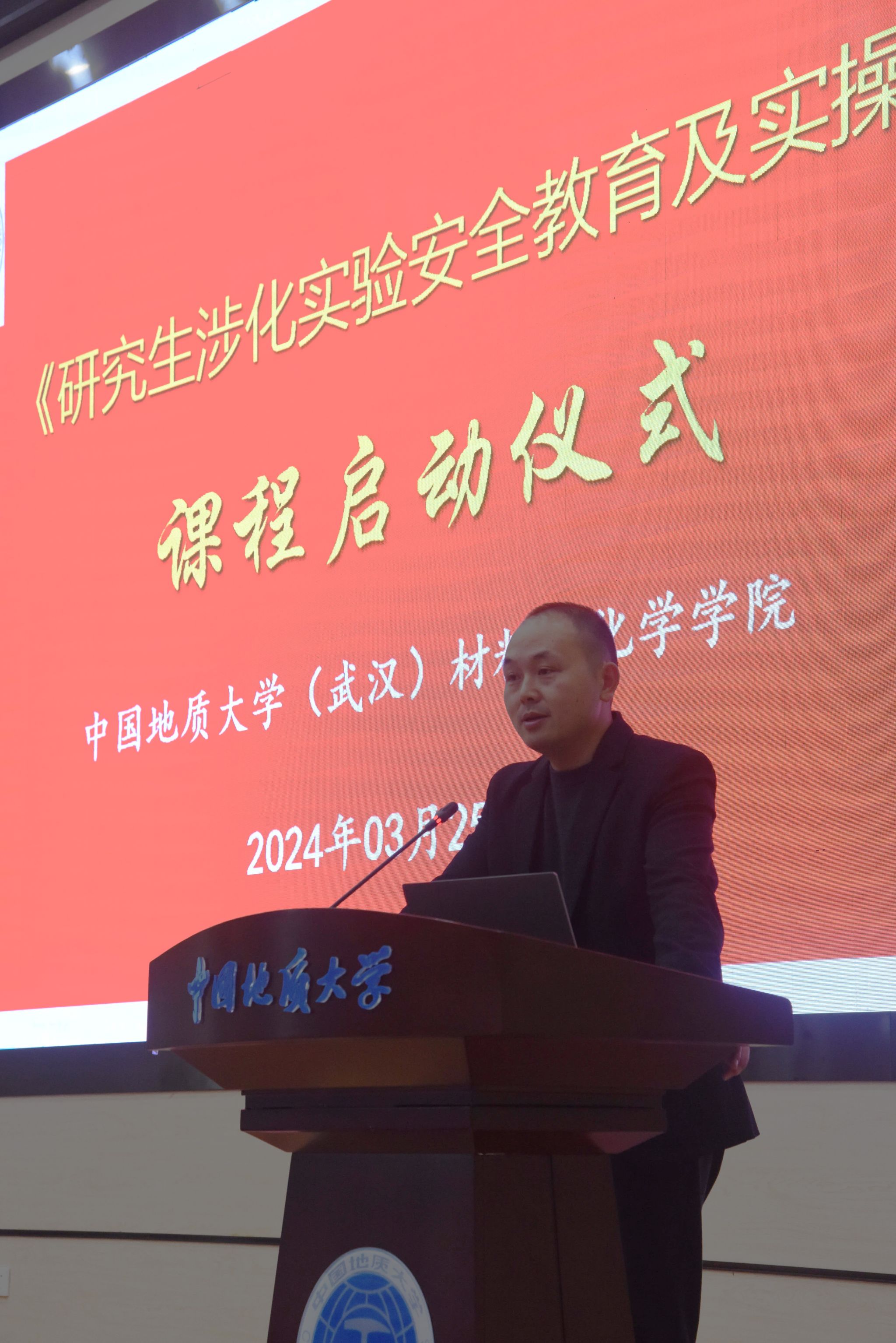 实验室安全管理体系。他强调,涉化实验室多涉及有毒有害试剂、危险性实验过程,一直是安全事故的多发之地,也是学校安全管理工作中的重中之重。研究生作为科研实验主体,如何提高研究生的安全意识和应急技能对于保障科研实验室安全至关重要。他指出,材化学院高度重视实验室安全教育工作,在近年的全校大学生安全准入考试中,材化学院一直名列前茅。今年,学院面向全体一年级研究生设立《研究生涉化实验安全教育及实操》课程,突出理论与实操相结合的特色,并将其作为研究生入学教育的重要内容,无疑将进一步深化研究生的安全意识,提高研究生的安全操作技能和应急处理能力。