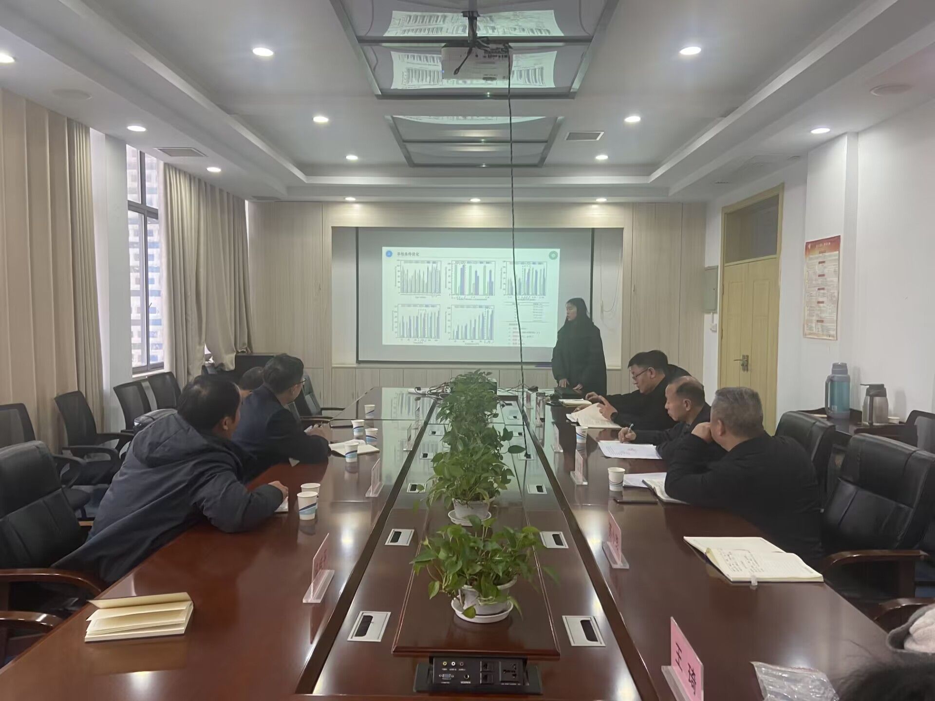座谈会由环安所总支委员、高级农艺师姚延兴主持。联培研究生冯桂平、王琦汇报了一年半以来完成的各项研究工作情况。联培导师高强、董军、苏小路分别对两位研究生的工作汇报进行现场指导与点评。互动交流环节,双方就开展党建共建、加强研究生联合培养基地建设以及深化科研合作等方面进行深入交流。