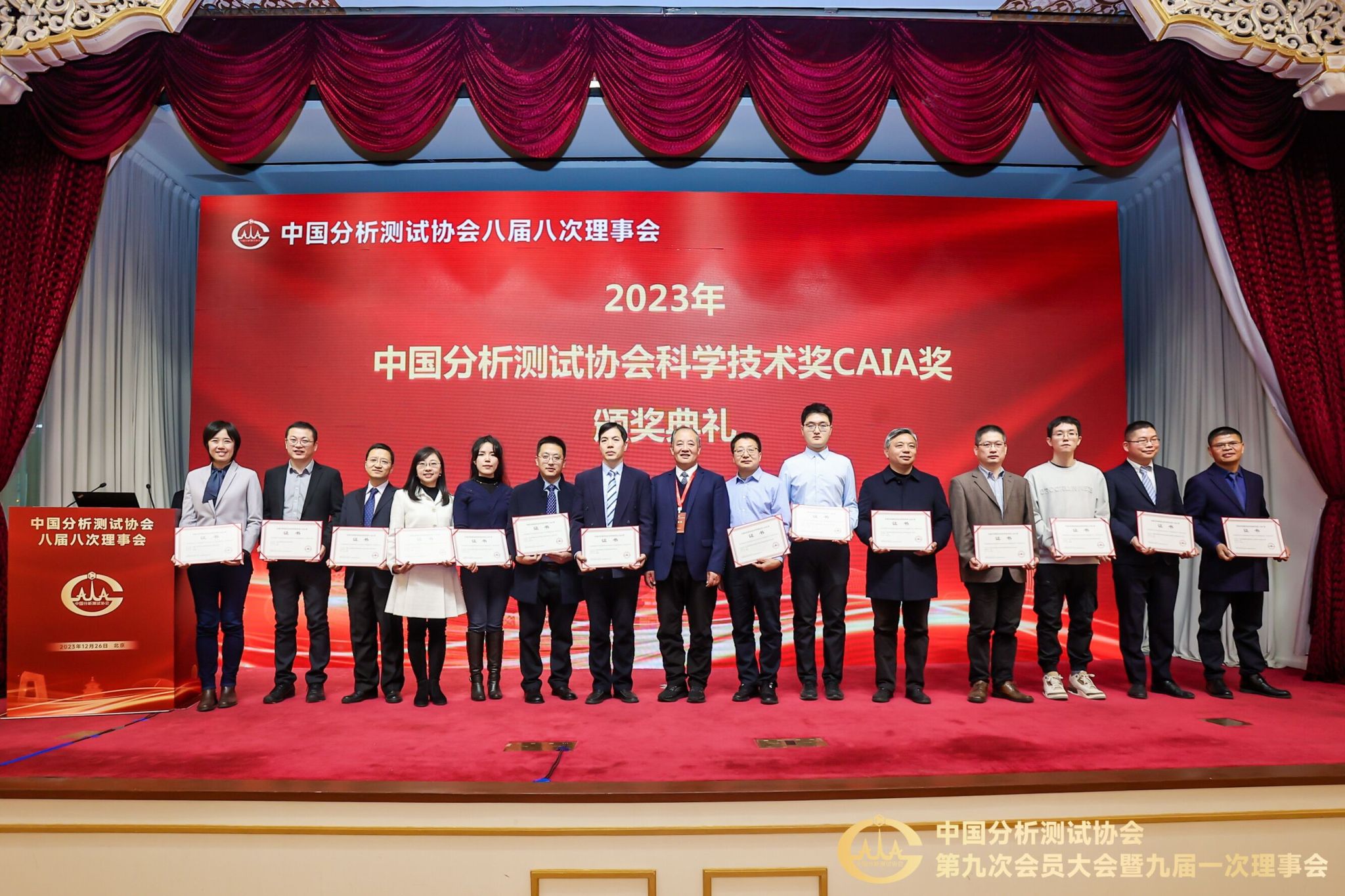 12月26日上午,在北京召开了中国分析测试协会第八届理事会第八次会议,并颁发了2023年中国分析测试协会科学技术奖CAIA奖。该奖项设立于1993年,旨在奖励在分析测试领域的新发现、新原理、新方法、新应用研究中取得优秀成果的科技工作者和单位。本次评选过程经过函审、会审和综合评审,综合考量创新程度、技术指标先进性、科学价值、应用推广情况和经济或社会效益等方面,共评选出一等奖14项,二等奖17项。