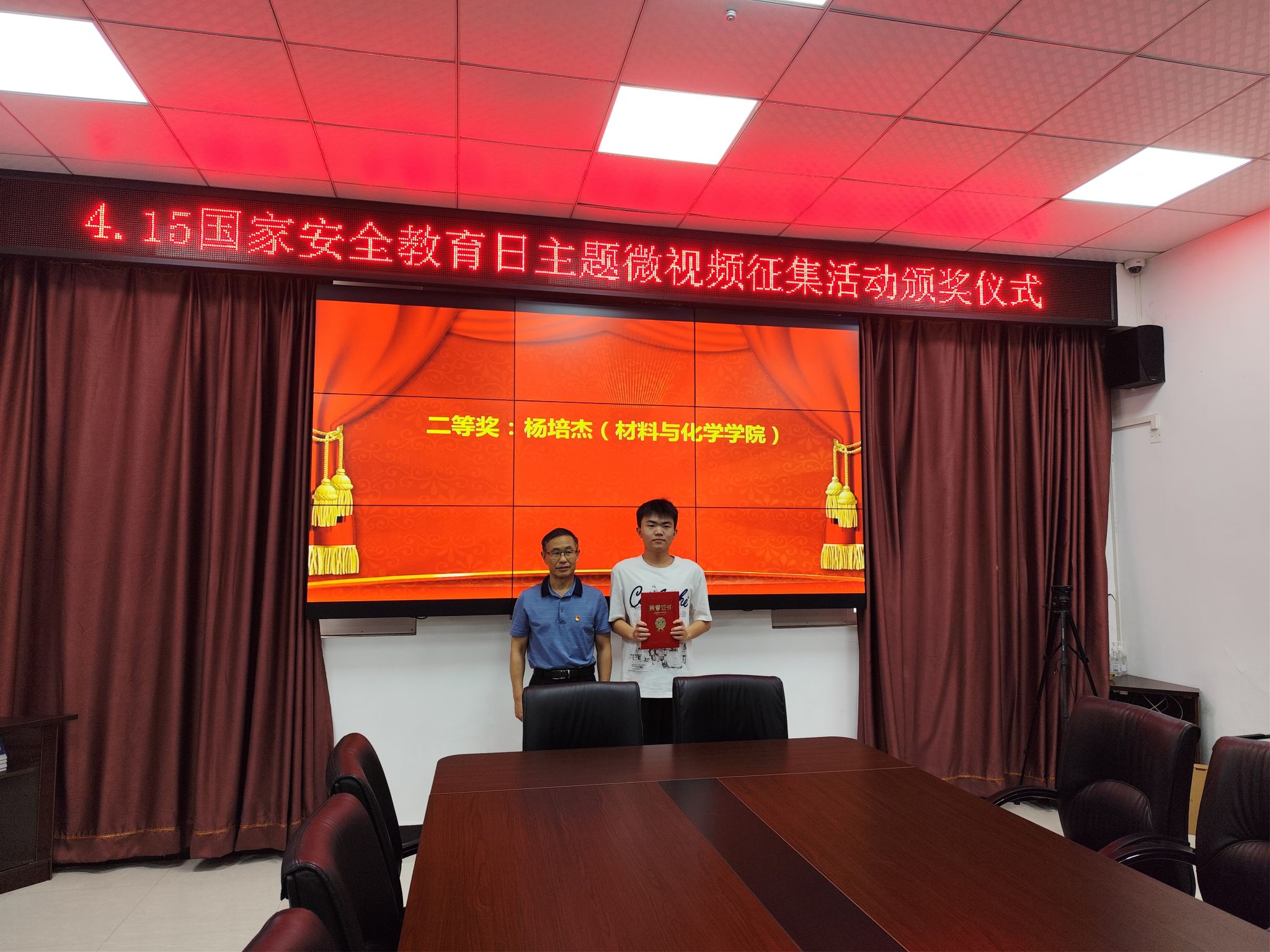 6月27日下午,午夜AV 4.15全民国家安全教育日微视频征集活动颁奖仪式在安全保卫部举行。由午夜AV 刘浴辉和张丽琪老师共同指导、2023级研究生杨培杰团队提交的主题微视频《实验室安全》获评校级二等奖。 2024年是习近平总书记提出总体国家安全观10周年,4月15日是第九个全民国家安全教育日。增强研究生实验室安全意识是践行总体国家安全观的重要体现。学院积极响应午夜AV 组织的4.15全民国家安全教育日微视频征集活动,在刘浴辉和张丽琪两位老师的共同指导下,午夜AV 2023级研究生杨培杰团队,从剧本的创作、演员的确定、场景的设计、拍摄和剪辑等方面通力合作,克服了时间短、任务重的困难,高质量完成并提交了主题微视频《实验室安全》。本作品在评选过程中,得到了评委们的一致好评,最终获得校级二等奖,这也是本年度全校最好成绩。 本次微视频制作的全过程得到了学院学工和安全巡查工作组的大力支持,教学实验中心为拍摄工作提供了平台保障。通过本次活动,在师生中掀起了一股学习总体国家安全观的热潮,师生的安全意识得到进一步加强,主动参与安全知识学习的积极性获得了进一步提升。