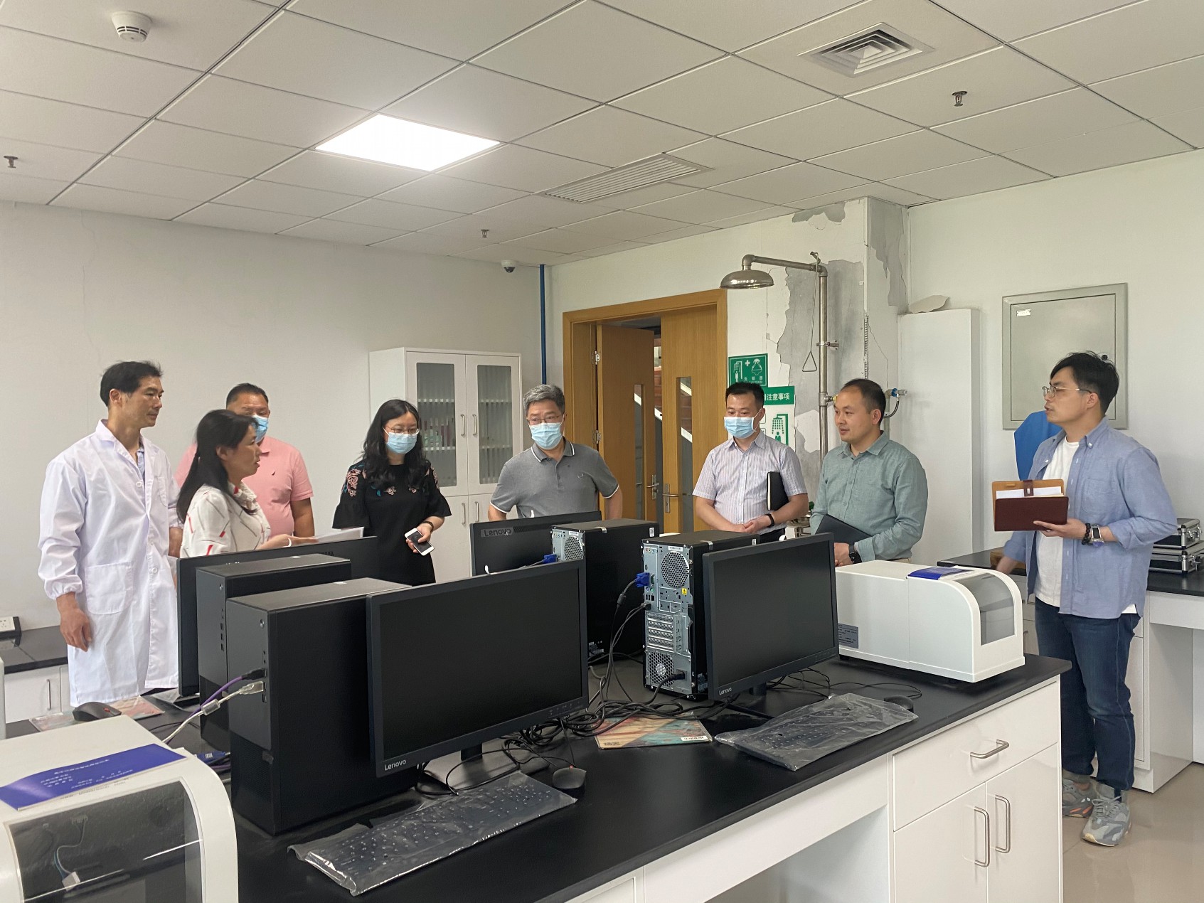 教学实验中心调研实验室管理及建设工作。学院党委书记黄菊、学院副院长公衍生、教学实验中心主任夏开胜、中心支部书记周森老师陪同调研。王校长一行现场查看了有机化学实验室、分光光度计室、材料性能表征实验室等教学实验室建设与运行情况。