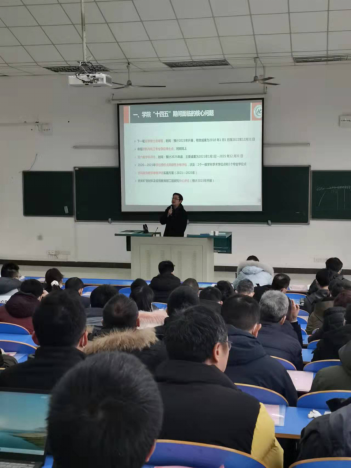 材化学院院长夏帆同志作题为《融合推进,内涵提升》的2021年度学院工作报告。报告总结了材化学院一年来充分发挥党委政治功能,提升党建思政工作效度,引领学院高质量发展,提升科研与社会服务度,总结了一年来在持续推进教育教学改革、培养一流本科人才、加强学科及学位点建设、优秀人才引进、重点项目突破、加强科研团队及平台建设、加强实验教学及日常管理等方面开展的工作及取得的成绩,并提出学院“十四五”期间面临的核心问题,号召全院教职工共同努力,推动2022年学院各项工作再上新台阶。