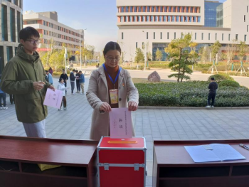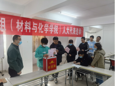 )人大代表选举投票点”,分别在未来城校区材化学院科五楼广场和南望山校区大学生支持中心前开展全院选民的投票工作。