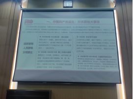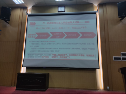 黄书记从“北伐战争、土地革命战争、抗日战争、解放战争”四个重要时期介绍了“救国”阶段——即新民主主义革命时期的伟大成就。从北伐战争到新中国成立,黄书记详细地向同学们介绍了中国共产党在这一时期的主要革命行动和重大的会议,以及中国共产党艰辛探索的道路上,出现的许多可歌可泣的人物和事迹,同学们通过历史的学习进一步了解了中国共产党从摸索走向成熟的历程。