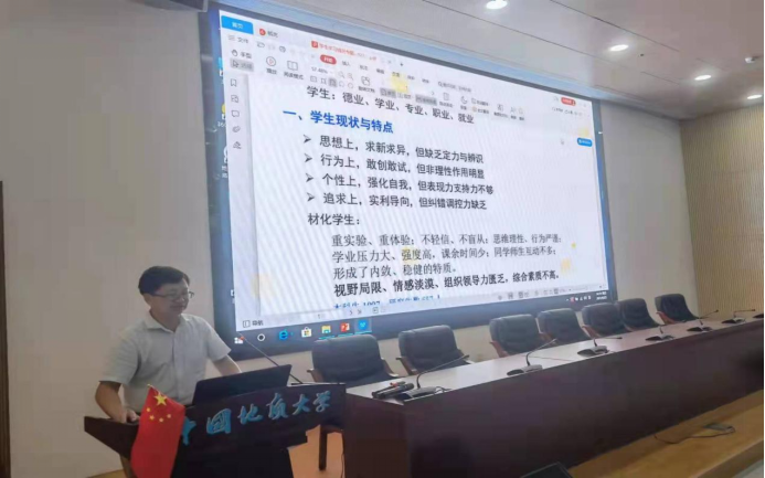 余江涛副书记做了学院学生学习和就业情况专题报告。他首先引用“学生为本,学者为重,学科为基,学术为要”这句话,认为学生应立足“五业”,即德业、学业、专业、职业、就业;接着余书记细致地分析讲解了当下学生学习和毕业就业所存在的问题,建议老师要加强和学生的交流沟通,深入学生实际,加强理想信念教育,竭尽所能,化育优才。