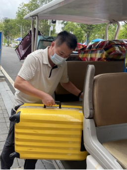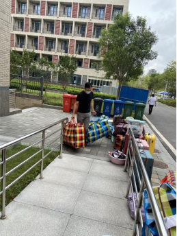在终点站——未来城校区,学院领导班子和院直老师早早就在宿舍楼下等待同学们的到来,让同学们一下车就感受到了亲人般的关怀。未来城校区管理办也为同学们安排了充足的行李转运车。从大巴车到转运车,从宿舍楼下到宿舍,学院领导老师和同学们齐心协力,将全部行李妥帖地搬到各自宿舍。
