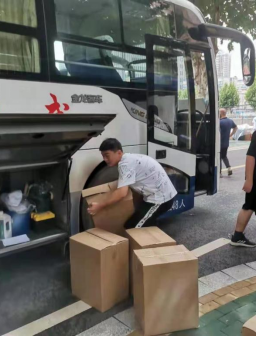 在整个工作过程中,令人感动的一幕幕不断呈现在眼前。学院党委书记黄菊,副院长公衍生、李国岗、周炜,院直李晓晔、唐伟等学院领导老师在未来城接车点将一件件行李一趟趟搬运上宿舍楼;在南望山搬运流水线的摆放岗位,学院党委副书记余江涛边搬边指引讲解如何摆放行李,做到有序高效,并到车里和同学们一起摆放行李,站到车厢最里处将同学们每一件行李有序搬到车内;学务指导老师鲁立强亲自进入狭窄的客车货厢为同学们合理摆放物品;在大雨倾盆之时,班主任李季、万沙等老师悉心地为行李“撑伞”;辅导员陈文婷、侯亚飞等老师在帮忙搬运行李的同时,调运车辆、组织学生、核准人数和行李,使整个现场忙而不乱。井然有序;男生们肩扛手提,帮女生一包包、一件件地把行李从宿舍搬运上车,尽显绅士风范;室友间相互帮助,你帮我抬、我帮你提。这一幕幕场景,令每一位亲身参与者都倍感动容。