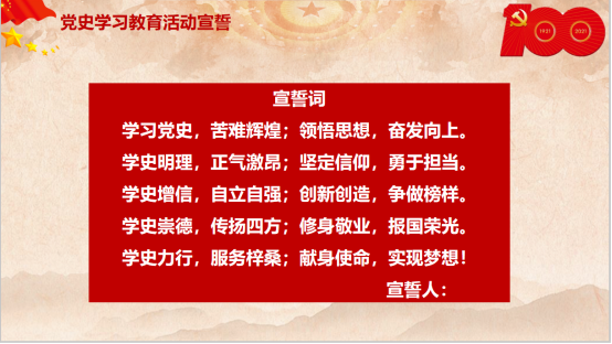 (武汉)学生工作处(部)关于在全校学生中深入开展庆祝建党100周年和党史学习教育的实施方案》进行了详细的介绍。并从“党史论著‘精学’、主题活动‘导学’、理论宣讲‘助学’、党史知识竞赛‘促学’、红色文艺‘辅学’、实践服务‘励学’、骨干典型‘引学’”七个方面介绍了学院党史学习教育活动方案,并鼓励同学们在学中做,在做中学,以学促进,知行合一,做到“学党史、悟思想、办实事、开新局”。
