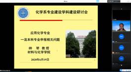 化学学科与专业建设,今后如何精准发力?2020年6月19日,化学系全体教师、校内相关学科专家学者、学院领导、学生代表和校友代表,相聚云端,举行网络视频会议,围绕一流本科专业建设和化学博士点申报建言献策。