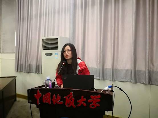 材化学院青年教师罗丽荣副研究员在向专家介绍自己的研究方向