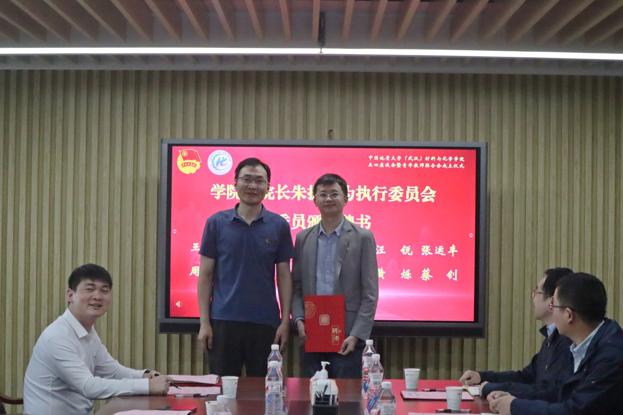 学院党委书记梁本哲为青年教师联合会授牌并颁发会长聘书,副院长李国岗、朱振利为青年教师联合会副会长、秘书长颁发聘书。