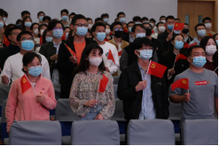 在各分会场,广大师生听取完大会报告,各个心潮澎湃,激动不已,面向党旗集中宣誓,重温入党誓词。