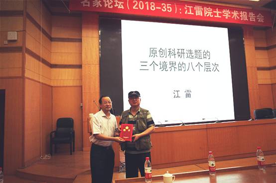 仪式结束后,江雷院士为学院师生做了一场题为“原创科研选题的三个境界的八个层次”的学术报告。江雷院士的报告深入浅出,以其深厚的学术造诣和丰富的实践经验鼓励师生用中国古代哲学的智慧去研究西方现代科学,以全新的视角和幽默风趣的语言为师生们介绍仿生智能纳米界面材料的研究,受到了与会师生的热烈欢迎!报告会后,江雷院士还与学院青年教师代表进行了亲切交流。青年教师简要汇报了自己的研究,江院士一一点评,大家获益匪浅。