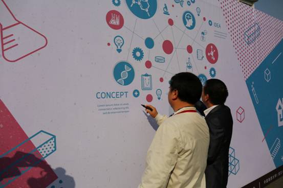 合影留念后,院党委书记吴太山亲自参与到实验展演中,与展演团队互动交流。在肯定每个项目成员所做努力的基础上,他详细询问讲解员实验原理,并与同学交流如何加强和改进实验的展演效果。