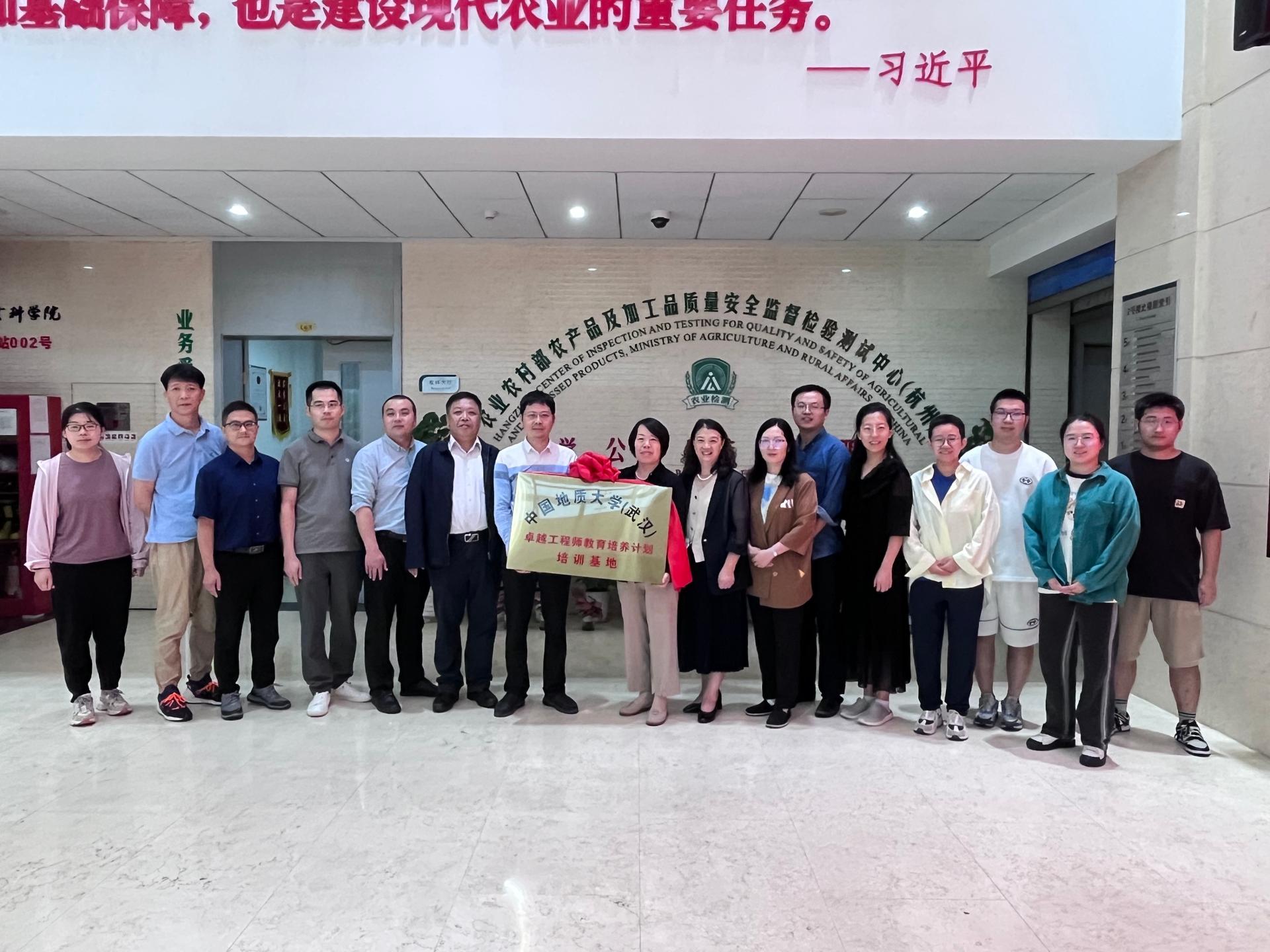 为进一步加强对外交流与校政企合作,提升人才联合培养成效,9月22日,学院院长胡兆初、应用化学专业负责人帅琴等一行前往浙江地矿科技有限公司杭州检验检测中心(自然资源部杭州矿产资源检测中心,以下简称“浙江地科公司”)和浙江省农业科学院(以下简称“浙江农科院”)调研考察人才联合培养与科技合作等工作,并分别与浙江地科公司党委书记董事长袁波、浙江农科院农产品质量安全与营养研究所所长褚田芬为“卓越工程师教育培养计划”(以下简称“卓越计划”)培训基地揭牌。