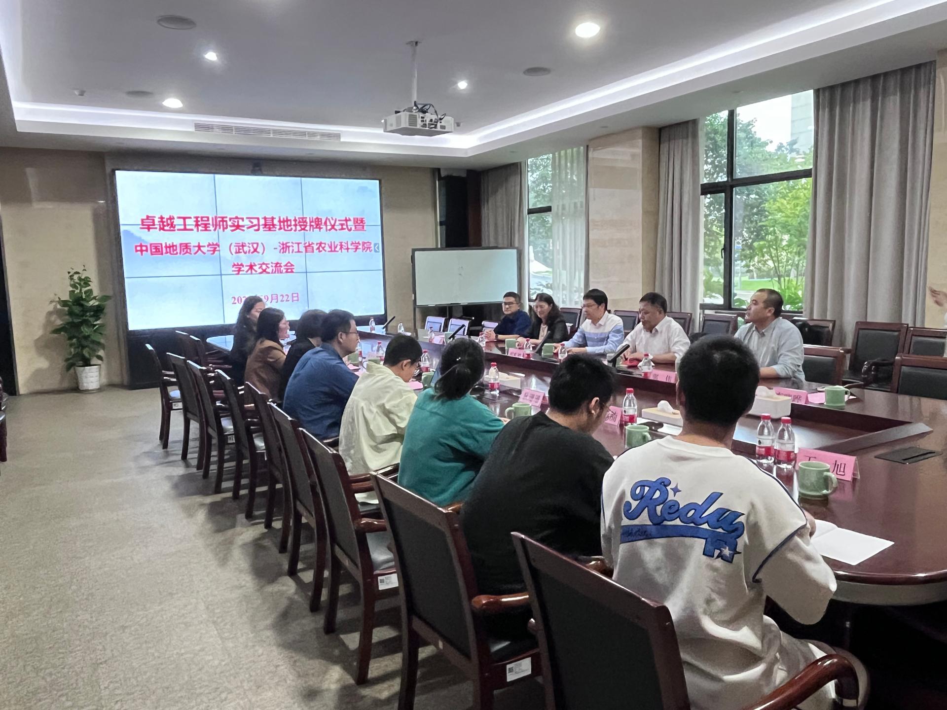 在浙江省农科院,浙江农科院农产品质量安全与营养研究所所长褚田芬对胡兆初院长一行表示热烈欢迎,她指出,农产品质量安全与营养研究所是浙江农科院下设的、集农产品质量安全与标准领域科学研究、标准制定及农业检测与农业投入品应用评价等技术服务于一体的专业性研究机构,拥有九大国家和部省级科技创新和服务平台,她感谢地大对农科院及研究所人才培养工作的大力支持,期待以合作共建“卓越计划”培训基地为契机,推动双方科技创新合作与人才培养实现更大发展。“卓越计划”企业导师赵慧宇副研究员介绍了“卓越计划”及研究生联合培养的情况。